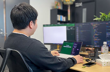 - 朝はチームで進捗や課題を共有し、各担当者と仕様を確認します。その後、今日やるべき作業を整理して、優先順位を決めます。