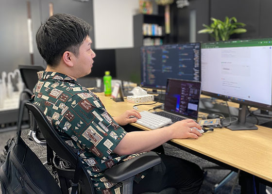 自社では、より良いプロダクトを開発するために、技術レベルの高い上司や先輩と積極的に意見を交わしながら業務を進めます。その過程で新たな知見を得たり、実践的なスキルを磨いたりする機会が豊富にあり、自身の技術力を着実に高めていける環境が整っています。また、チーム全体で課題解決に取り組む文化があり、日々の業務を通じてやりがいを実感できています。